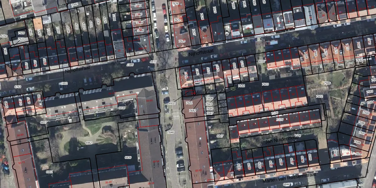 Gebruik de zoekbalk of klik op een perceel voor informatie over de adressen binnen dit perceel.