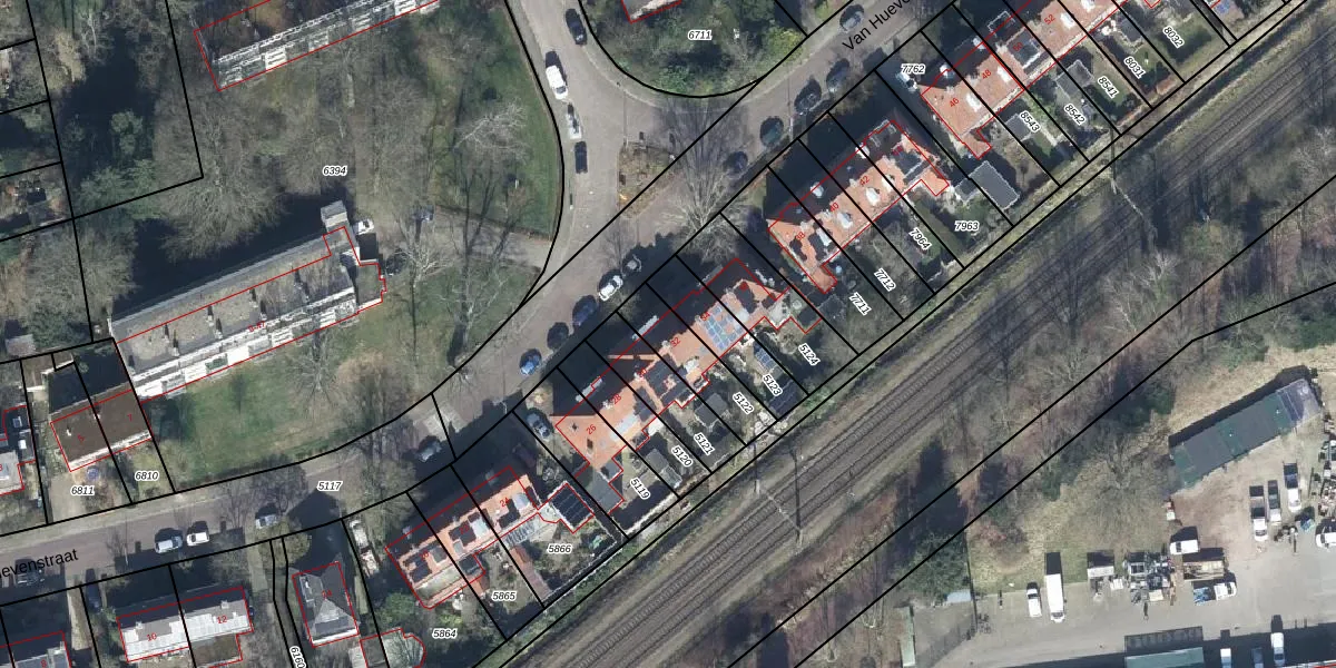 Het perceel waarop Van Huevenstraat 32 staat heeft een oppervlakte van 175 m². Dit is een middelgroot perceel. De perceeloppervlakte wordt geregistreerd door het Kadaster. Gedetailleerde informatie over de maten van dit perceel kunt u vinden in het rapport Kadastrale kaart met maatvoering van Van Huevenstraat 32.