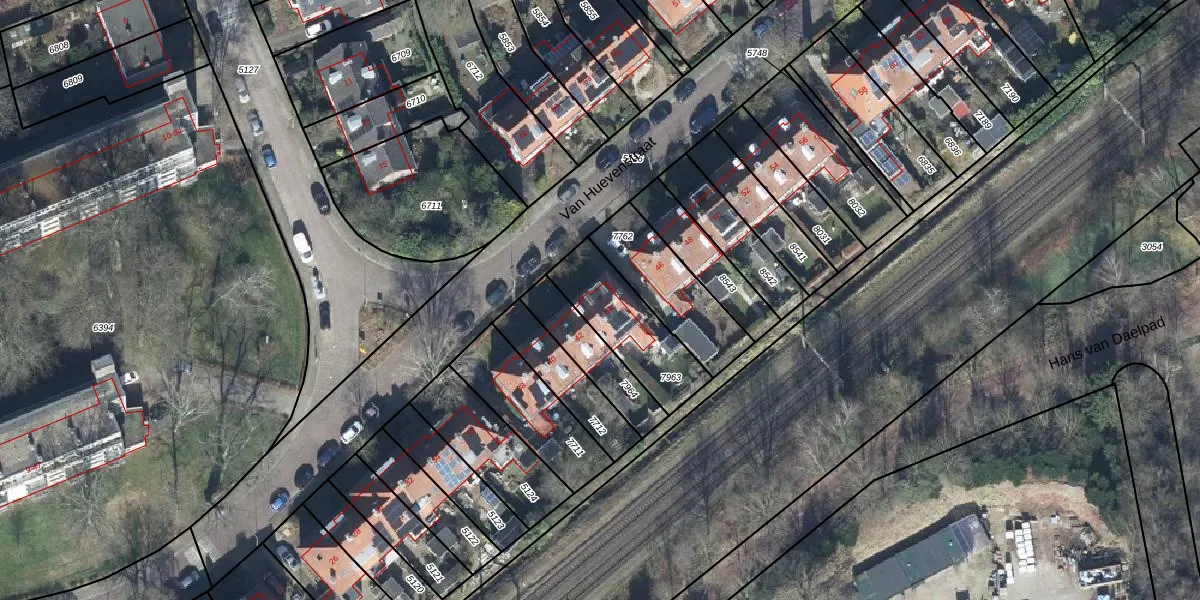 Het perceel waarop Van Huevenstraat 44 staat heeft een oppervlakte van 289 m². Dit is een middelgroot perceel. De perceeloppervlakte wordt geregistreerd door het Kadaster. Gedetailleerde informatie over de maten van dit perceel kunt u vinden in het rapport Kadastrale kaart met maatvoering van Van Huevenstraat 44.