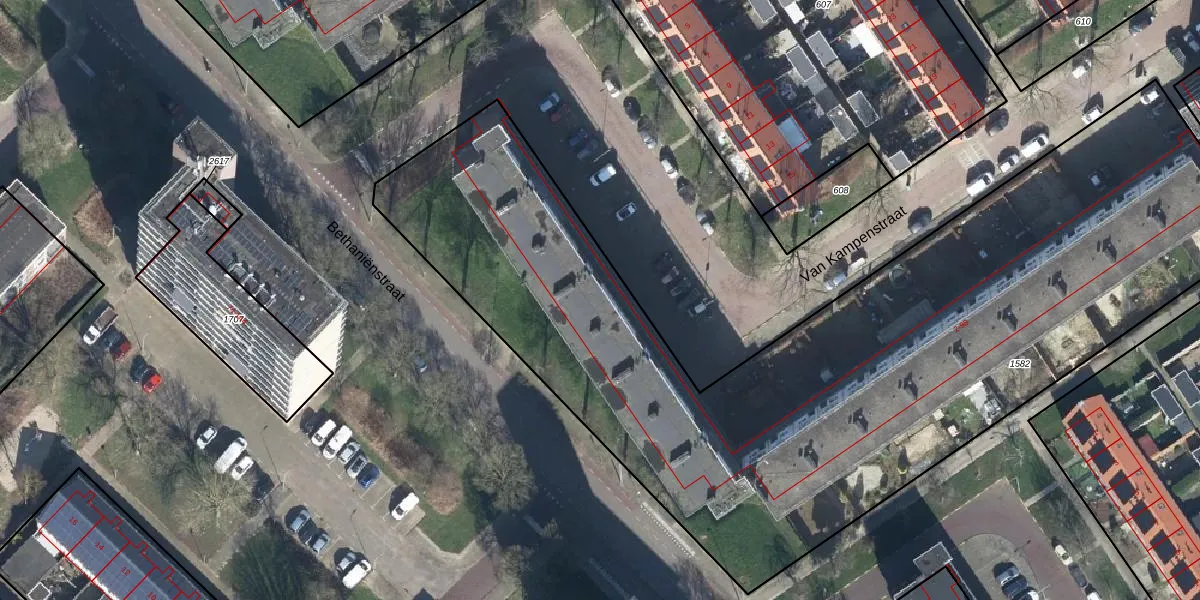 Het perceel waarop Van Kampenstraat 18 staat heeft een oppervlakte van 4750 m². Dit is een zeer groot perceel. De perceeloppervlakte wordt geregistreerd door het Kadaster. Gedetailleerde informatie over de maten van dit perceel kunt u vinden in het rapport Kadastrale kaart met maatvoering van Van Kampenstraat 18.