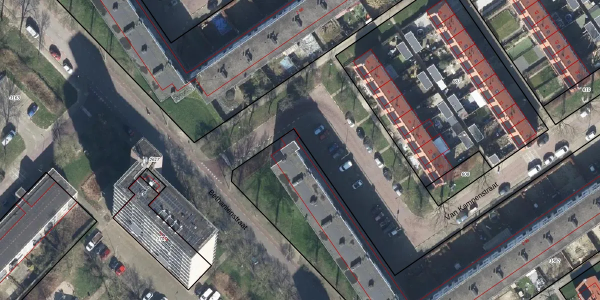 Het perceel waarop Van Kampenstraat 2-N staat heeft een oppervlakte van 4750 m². Dit is een zeer groot perceel. De perceeloppervlakte wordt geregistreerd door het Kadaster. Gedetailleerde informatie over de maten van dit perceel kunt u vinden in het rapport Kadastrale kaart met maatvoering van Van Kampenstraat 2-N.