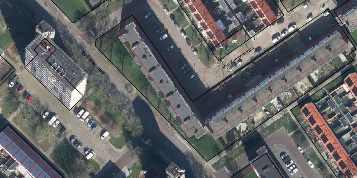 Het perceel waarop Van Kampenstraat 2-D staat heeft een oppervlakte van 4750 m². Dit is een zeer groot perceel. De perceeloppervlakte wordt geregistreerd door het Kadaster. Gedetailleerde informatie over de maten van dit perceel kunt u vinden in het rapport Kadastrale kaart met maatvoering van Van Kampenstraat 2-D.