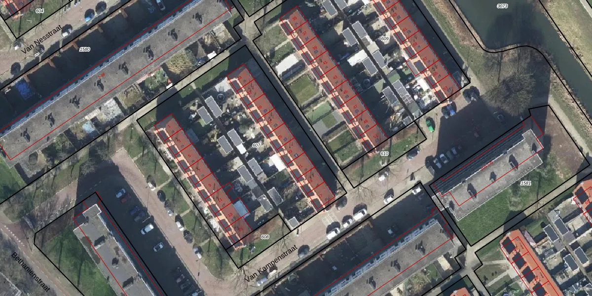 Het perceel waarop Van Kampenstraat 23 staat heeft een oppervlakte van 2547 m². Dit is een zeer groot perceel. De perceeloppervlakte wordt geregistreerd door het Kadaster. Gedetailleerde informatie over de maten van dit perceel kunt u vinden in het rapport Kadastrale kaart met maatvoering van Van Kampenstraat 23.