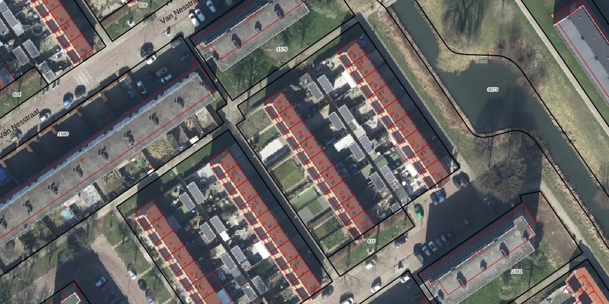Het perceel waarop Van Kampenstraat 41 staat heeft een oppervlakte van 3024 m². Dit is een zeer groot perceel. De perceeloppervlakte wordt geregistreerd door het Kadaster. Gedetailleerde informatie over de maten van dit perceel kunt u vinden in het rapport Kadastrale kaart met maatvoering van Van Kampenstraat 41.
