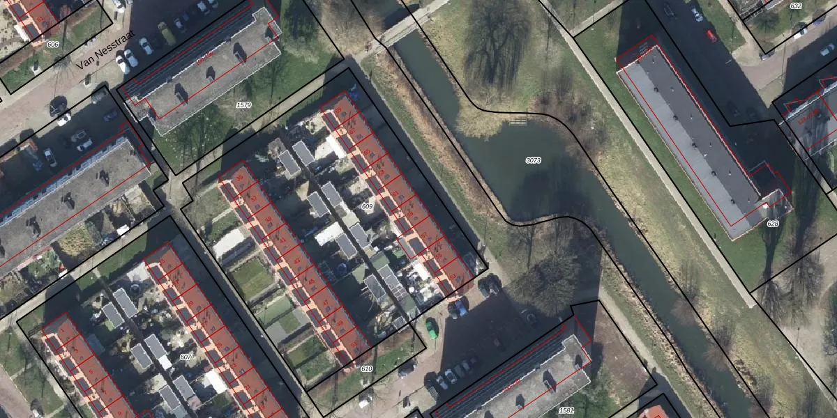 Het perceel waarop Van Kampenstraat 59 staat heeft een oppervlakte van 3024 m². Dit is een zeer groot perceel. De perceeloppervlakte wordt geregistreerd door het Kadaster. Gedetailleerde informatie over de maten van dit perceel kunt u vinden in het rapport Kadastrale kaart met maatvoering van Van Kampenstraat 59.