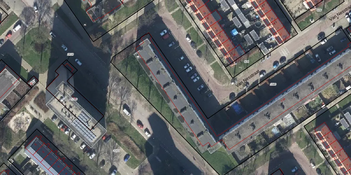 Het perceel waarop Van Nesstraat 26 staat heeft een oppervlakte van 4735 m². Dit is een zeer groot perceel. De perceeloppervlakte wordt geregistreerd door het Kadaster. Gedetailleerde informatie over de maten van dit perceel kunt u vinden in het rapport Kadastrale kaart met maatvoering van Van Nesstraat 26.
