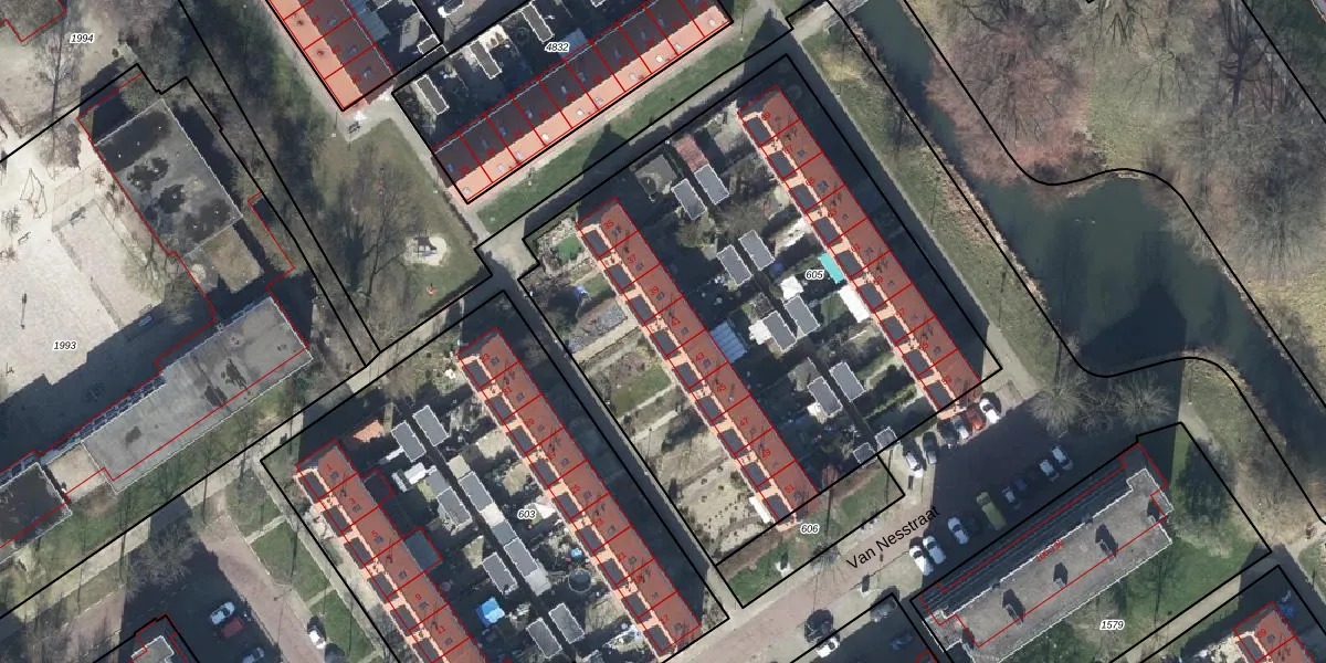 Het perceel waarop Van Nesstraat 41 staat heeft een oppervlakte van 2999 m². Dit is een zeer groot perceel. De perceeloppervlakte wordt geregistreerd door het Kadaster. Gedetailleerde informatie over de maten van dit perceel kunt u vinden in het rapport Kadastrale kaart met maatvoering van Van Nesstraat 41.