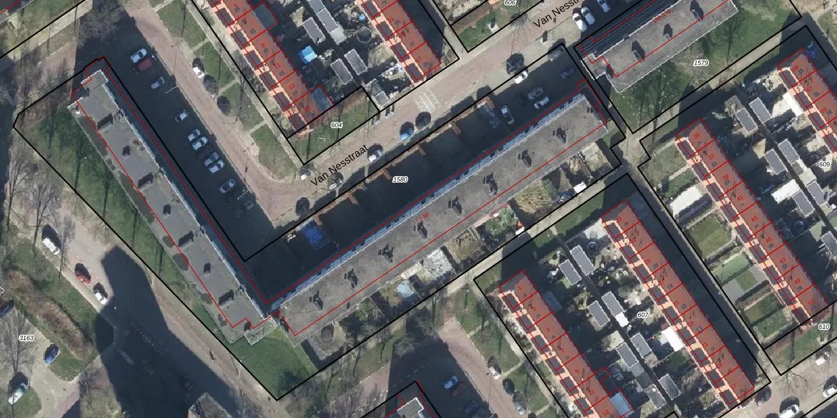 Het perceel waarop Van Nesstraat 74 staat heeft een oppervlakte van 4735 m². Dit is een zeer groot perceel. De perceeloppervlakte wordt geregistreerd door het Kadaster. Gedetailleerde informatie over de maten van dit perceel kunt u vinden in het rapport Kadastrale kaart met maatvoering van Van Nesstraat 74.
