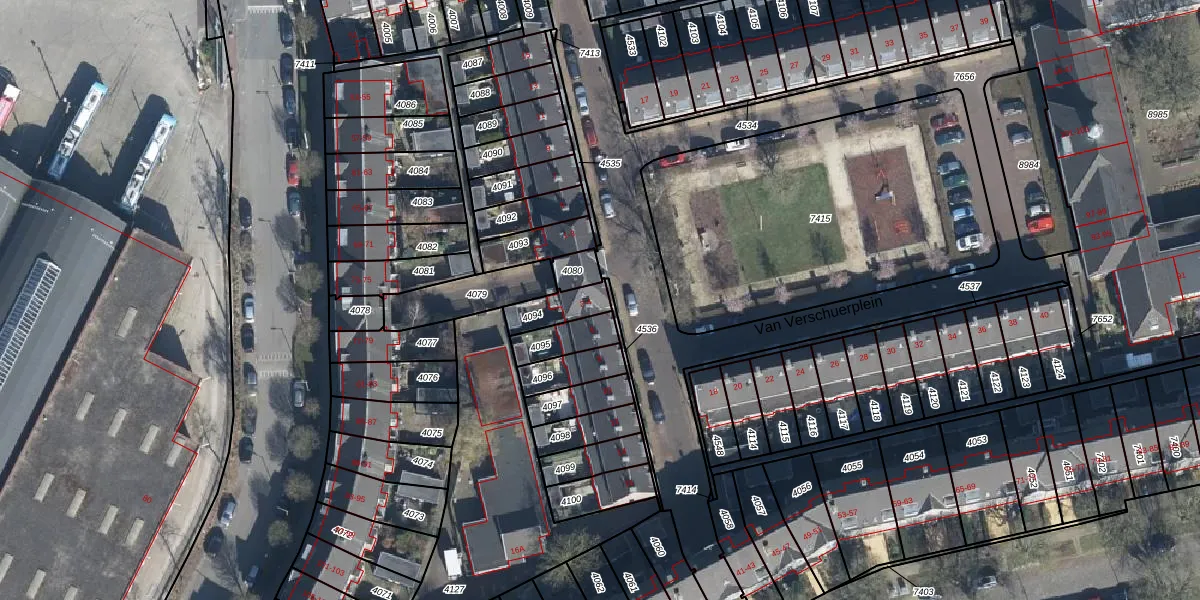 Van Verschuerplein 2 is gelegen op kadastraal perceel AHM01Q4094. Deze kadastrale aanduiding is uniek en wordt gebruikt door het Kadaster om eigendomsrechten en andere zakelijke rechten vast te leggen. Het perceel maakt onderdeel uit van de kadastrale gemeente Arnhem.
