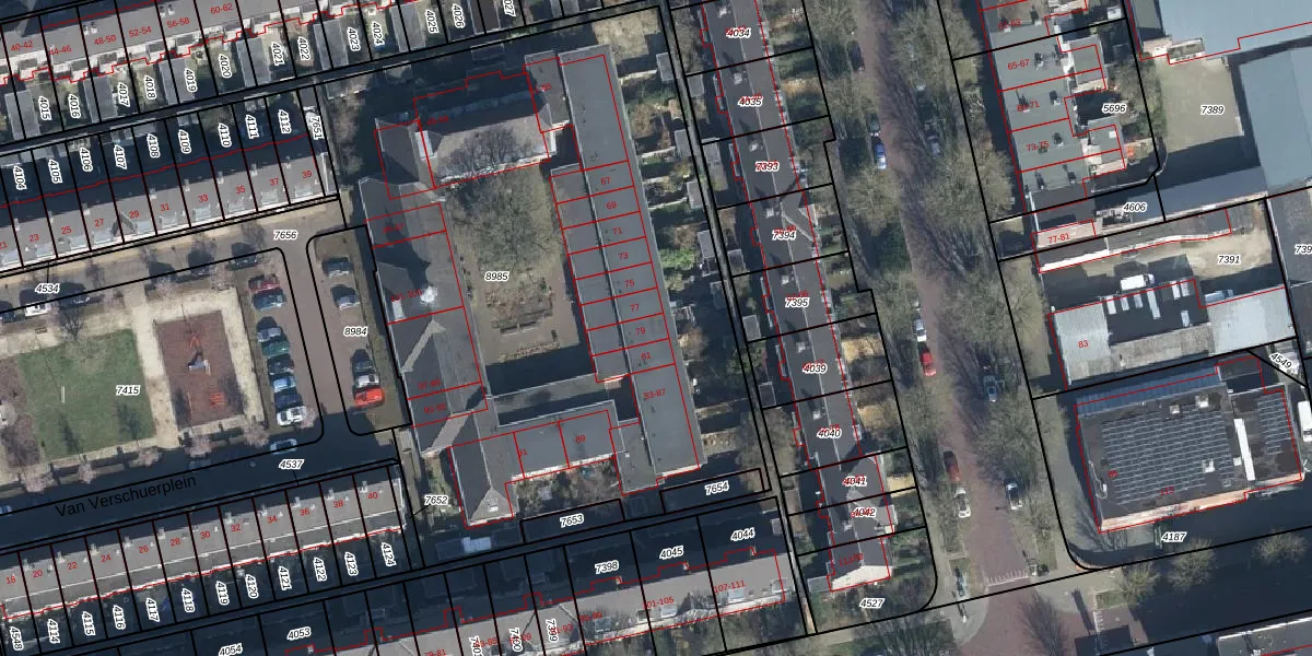 Van Verschuerplein 79 is gelegen op kadastraal perceel AHM01Q8985. Deze kadastrale aanduiding is uniek en wordt gebruikt door het Kadaster om eigendomsrechten en andere zakelijke rechten vast te leggen. Het perceel maakt onderdeel uit van de kadastrale gemeente Arnhem.