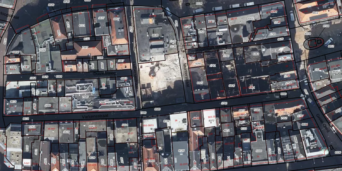 Het perceel waarop Varkensstraat 12-37 staat heeft een oppervlakte van 680 m². Dit is een groot perceel. De perceeloppervlakte wordt geregistreerd door het Kadaster. Gedetailleerde informatie over de maten van dit perceel kunt u vinden in het rapport Kadastrale kaart met maatvoering van Varkensstraat 12-37.