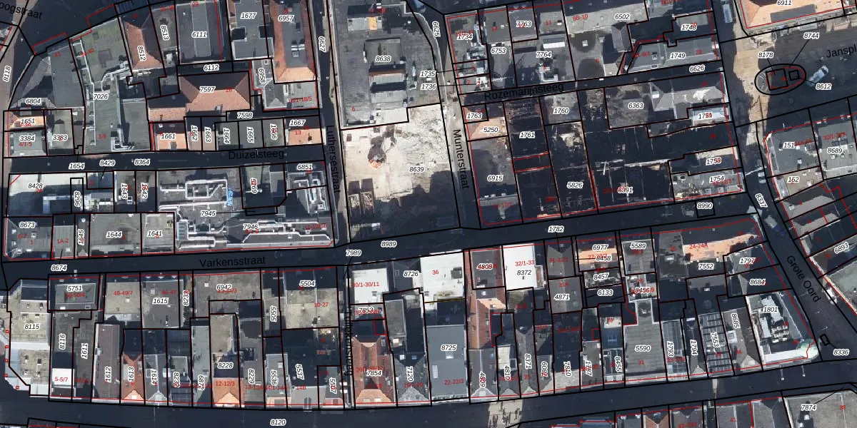 Het perceel waarop Varkensstraat 12-33 staat heeft een oppervlakte van 680 m². Dit is een groot perceel. De perceeloppervlakte wordt geregistreerd door het Kadaster. Gedetailleerde informatie over de maten van dit perceel kunt u vinden in het rapport Kadastrale kaart met maatvoering van Varkensstraat 12-33.
