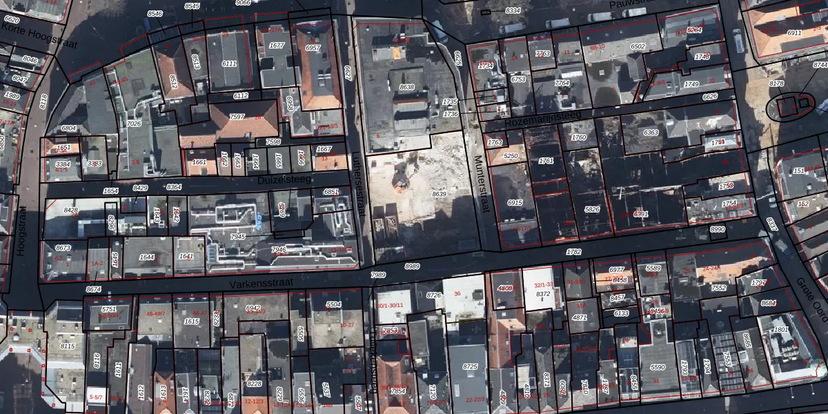 Het perceel waarop Varkensstraat 12-22 staat heeft een oppervlakte van 680 m². Dit is een groot perceel. De perceeloppervlakte wordt geregistreerd door het Kadaster. Gedetailleerde informatie over de maten van dit perceel kunt u vinden in het rapport Kadastrale kaart met maatvoering van Varkensstraat 12-22.