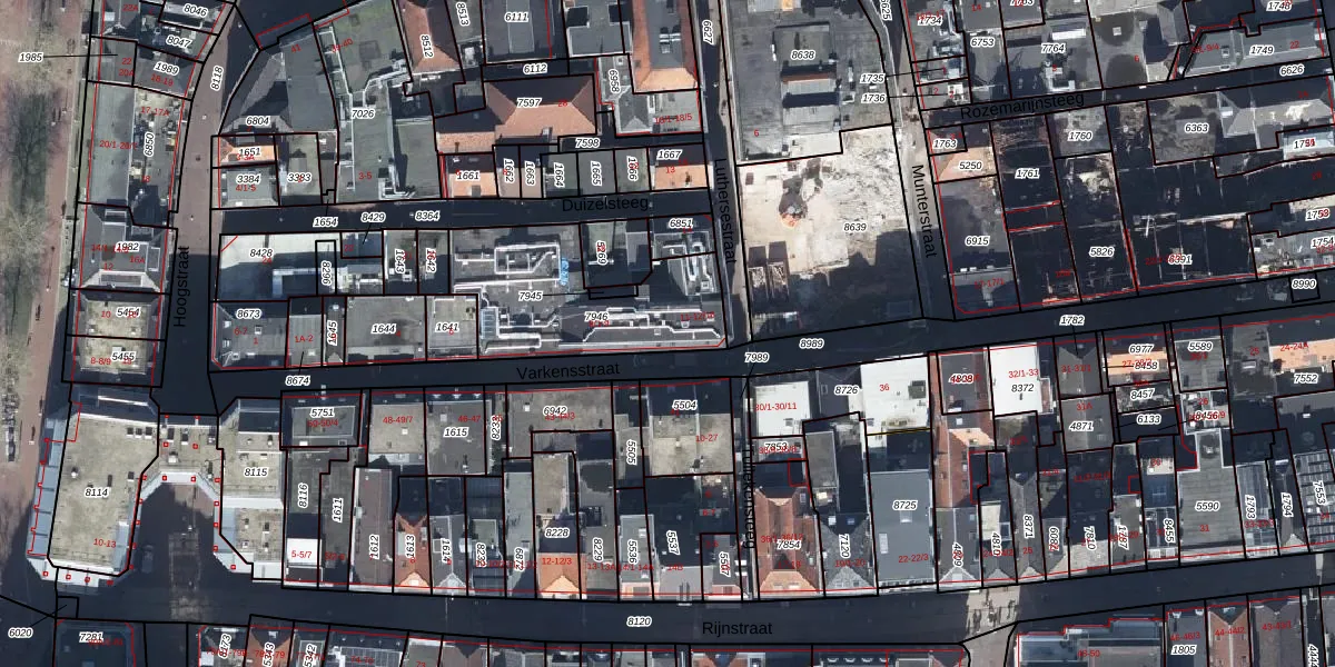 Het perceel waarop Varkensstraat 9 staat heeft een oppervlakte van 599 m². Dit is een groot perceel. De perceeloppervlakte wordt geregistreerd door het Kadaster. Gedetailleerde informatie over de maten van dit perceel kunt u vinden in het rapport Kadastrale kaart met maatvoering van Varkensstraat 9.