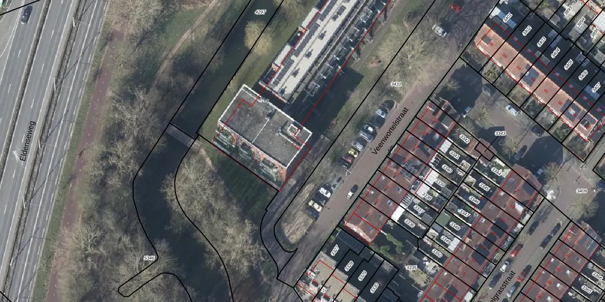 Het perceel waarop Veenwortelstraat 1 staat heeft een oppervlakte van 6500 m². Dit is een zeer groot perceel. De perceeloppervlakte wordt geregistreerd door het Kadaster. Gedetailleerde informatie over de maten van dit perceel kunt u vinden in het rapport Kadastrale kaart met maatvoering van Veenwortelstraat 1.