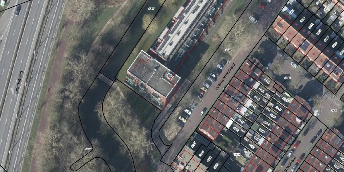 Veenwortelstraat 61 is gelegen op kadastraal perceel AHM01E3093. Deze kadastrale aanduiding is uniek en wordt gebruikt door het Kadaster om eigendomsrechten en andere zakelijke rechten vast te leggen. Het perceel maakt onderdeel uit van de kadastrale gemeente Arnhem.