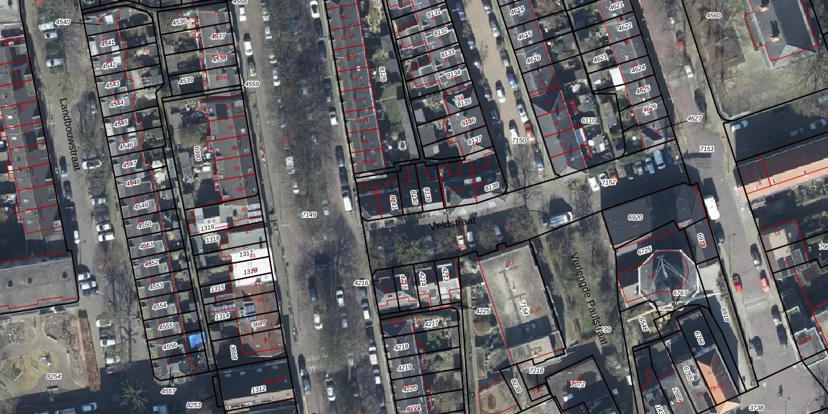 Het perceel waarop Veldstraat 7 staat heeft een oppervlakte van 60 m². Dit is een klein perceel. De perceeloppervlakte wordt geregistreerd door het Kadaster. Gedetailleerde informatie over de maten van dit perceel kunt u vinden in het rapport Kadastrale kaart met maatvoering van Veldstraat 7.
