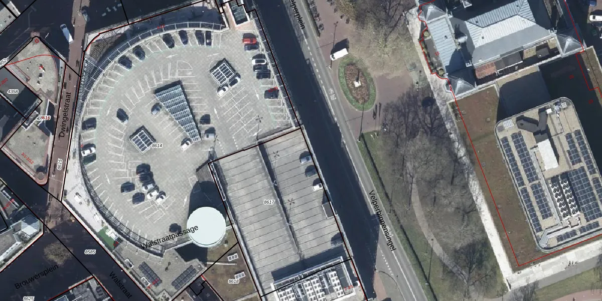 Gebruik de zoekbalk of klik op een perceel voor informatie over de adressen binnen dit perceel.