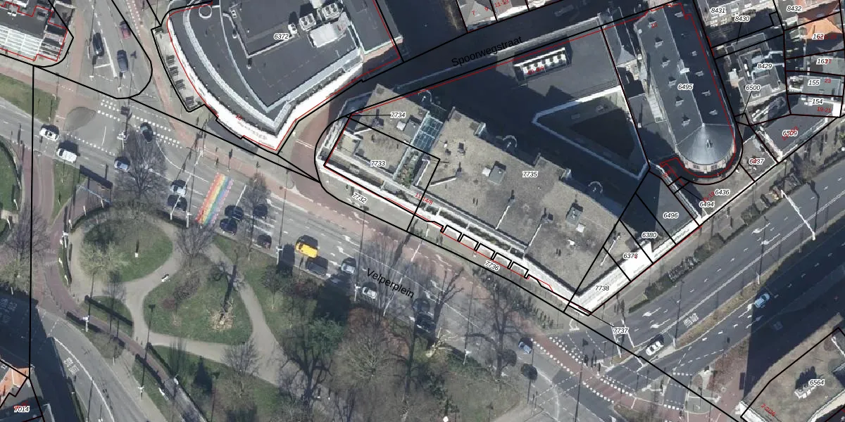 Het perceel waarop Velperplein 12-A staat heeft een oppervlakte van 2442 m². Dit is een zeer groot perceel. De perceeloppervlakte wordt geregistreerd door het Kadaster. Gedetailleerde informatie over de maten van dit perceel kunt u vinden in het rapport Kadastrale kaart met maatvoering van Velperplein 12-A.