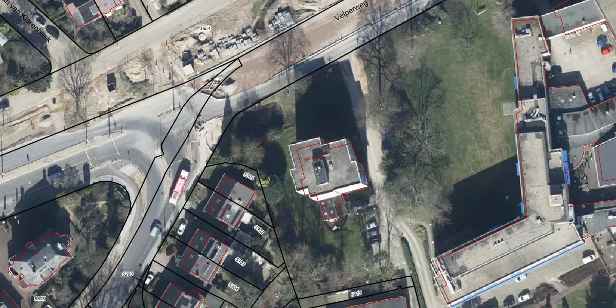 Het perceel waarop Velperweg 150-2 staat heeft een oppervlakte van 2,1 ha. Dit is een zeer groot perceel. De perceeloppervlakte wordt geregistreerd door het Kadaster. Gedetailleerde informatie over de maten van dit perceel kunt u vinden in het rapport Kadastrale kaart met maatvoering van Velperweg 150-2.