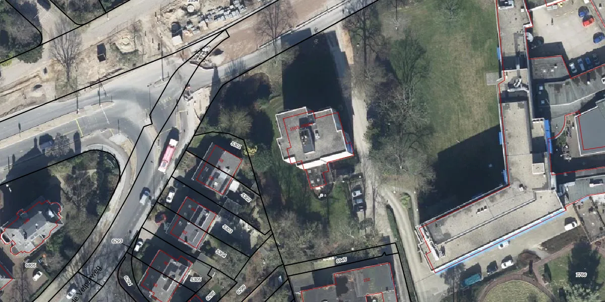 Het perceel waarop Velperweg 150-9 staat heeft een oppervlakte van 2,1 ha. Dit is een zeer groot perceel. De perceeloppervlakte wordt geregistreerd door het Kadaster. Gedetailleerde informatie over de maten van dit perceel kunt u vinden in het rapport Kadastrale kaart met maatvoering van Velperweg 150-9.