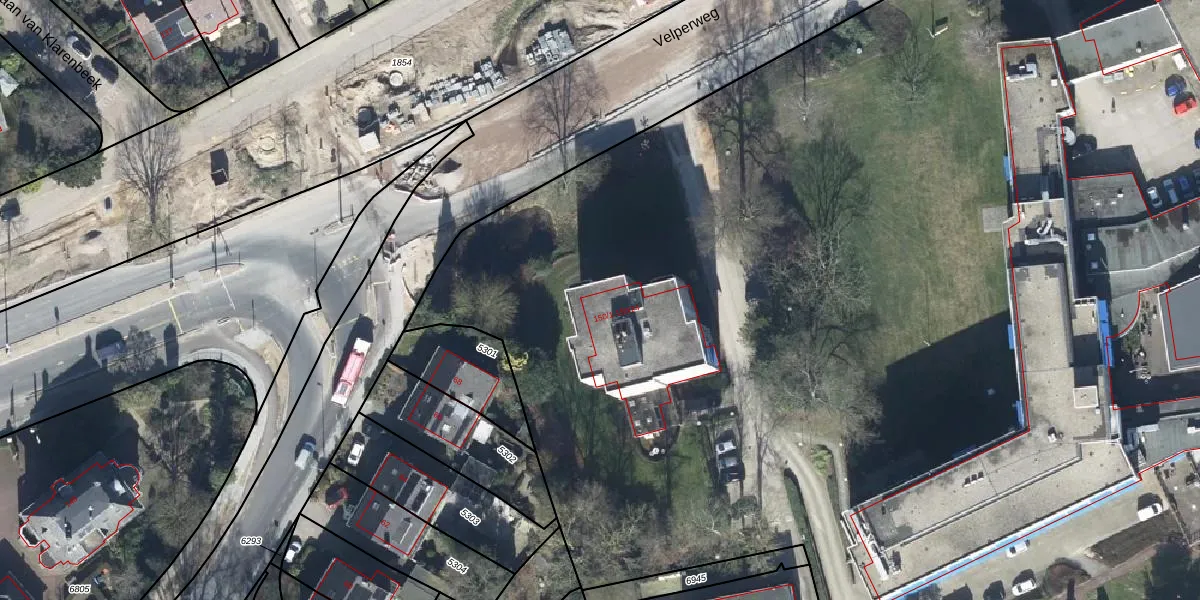 Het perceel waarop Velperweg 150-1 staat heeft een oppervlakte van 2,1 ha. Dit is een zeer groot perceel. De perceeloppervlakte wordt geregistreerd door het Kadaster. Gedetailleerde informatie over de maten van dit perceel kunt u vinden in het rapport Kadastrale kaart met maatvoering van Velperweg 150-1.