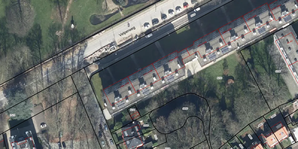 Het perceel waarop Velperweg 176-3 staat heeft een oppervlakte van 7345 m². Dit is een zeer groot perceel. De perceeloppervlakte wordt geregistreerd door het Kadaster. Gedetailleerde informatie over de maten van dit perceel kunt u vinden in het rapport Kadastrale kaart met maatvoering van Velperweg 176-3.