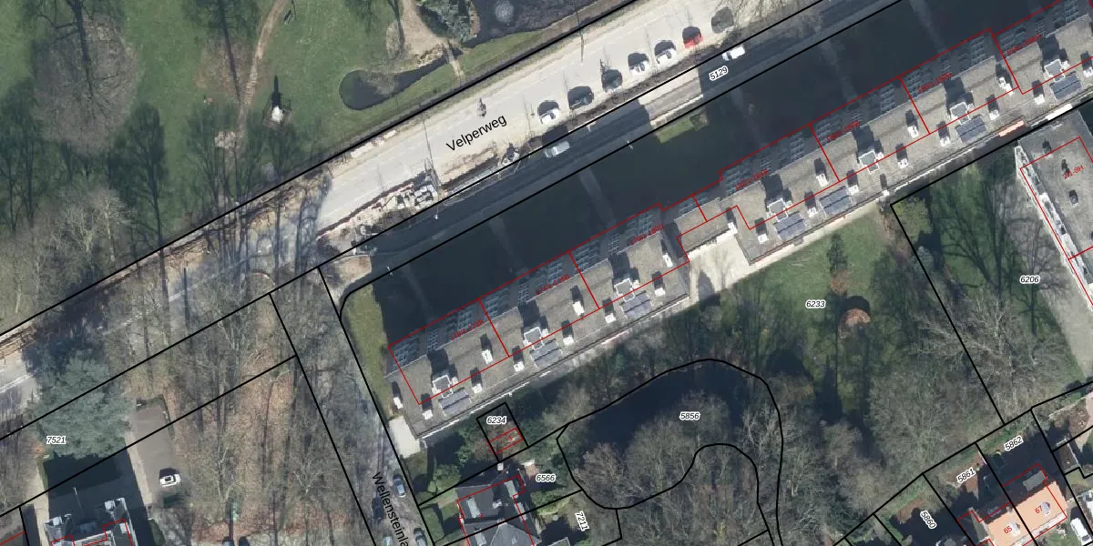 Het perceel waarop Velperweg 176-1 staat heeft een oppervlakte van 7345 m². Dit is een zeer groot perceel. De perceeloppervlakte wordt geregistreerd door het Kadaster. Gedetailleerde informatie over de maten van dit perceel kunt u vinden in het rapport Kadastrale kaart met maatvoering van Velperweg 176-1.