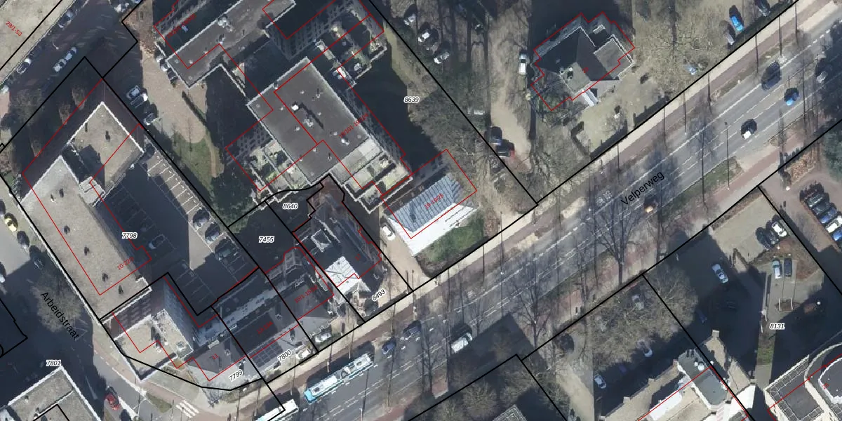 Het perceel waarop Velperweg 19-3 staat heeft een oppervlakte van 4859 m². Dit is een zeer groot perceel. De perceeloppervlakte wordt geregistreerd door het Kadaster. Gedetailleerde informatie over de maten van dit perceel kunt u vinden in het rapport Kadastrale kaart met maatvoering van Velperweg 19-3.