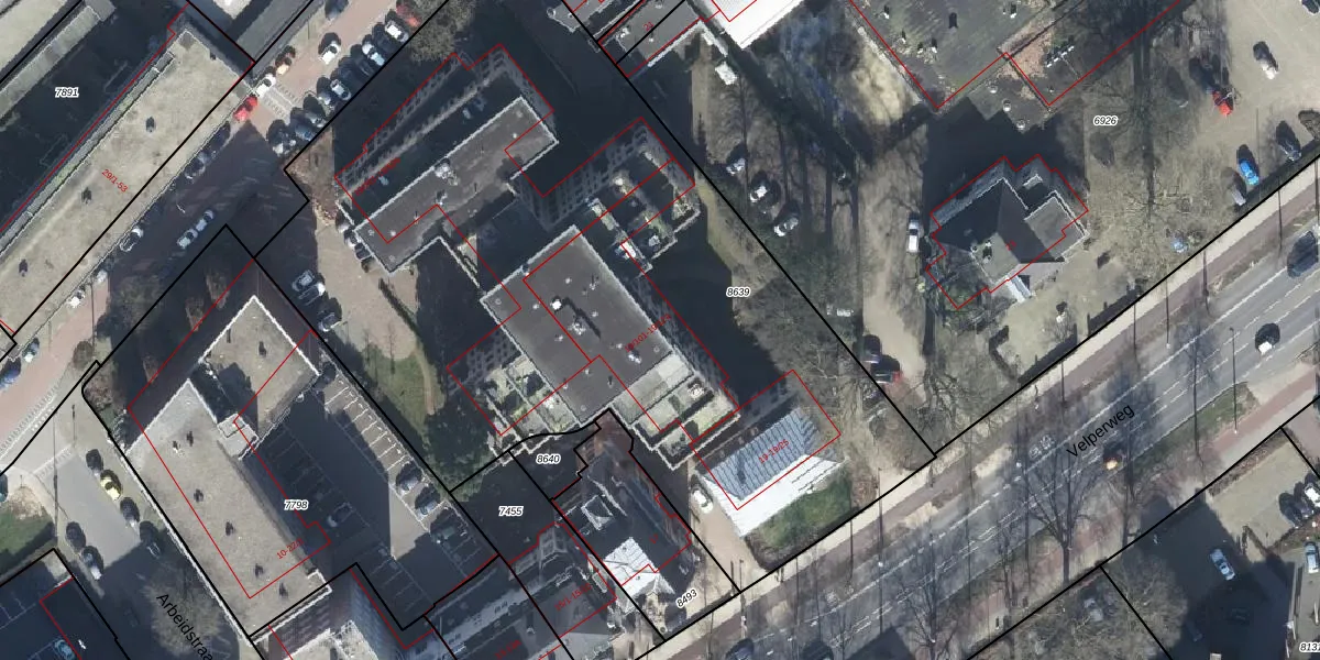 Het perceel waarop Velperweg 19-123 staat heeft een oppervlakte van 4859 m². Dit is een zeer groot perceel. De perceeloppervlakte wordt geregistreerd door het Kadaster. Gedetailleerde informatie over de maten van dit perceel kunt u vinden in het rapport Kadastrale kaart met maatvoering van Velperweg 19-123.