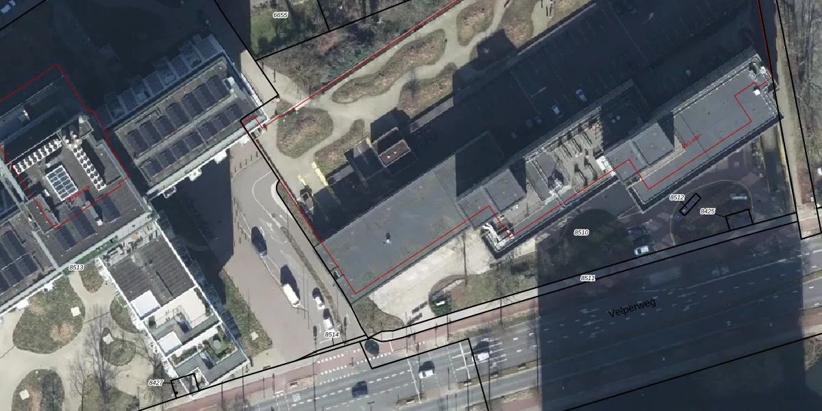 Velperweg 49-55 is gelegen op kadastraal perceel AHM01R8510. Deze kadastrale aanduiding is uniek en wordt gebruikt door het Kadaster om eigendomsrechten en andere zakelijke rechten vast te leggen. Het perceel maakt onderdeel uit van de kadastrale gemeente Arnhem.