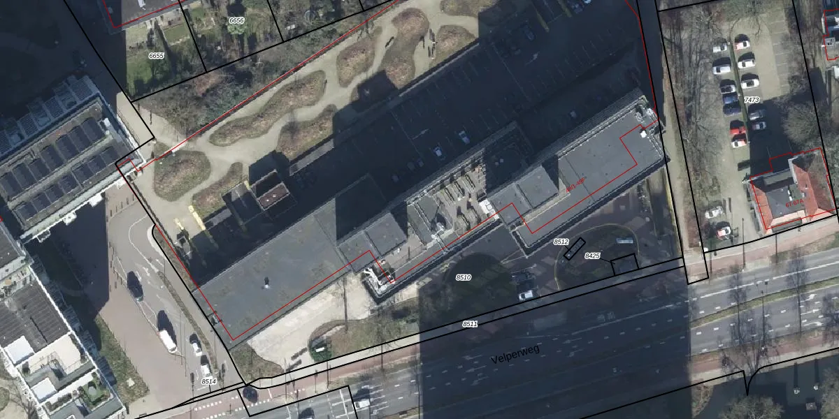 Het perceel waarop Velperweg 49-114 staat heeft een oppervlakte van 9350 m². Dit is een zeer groot perceel. De perceeloppervlakte wordt geregistreerd door het Kadaster. Gedetailleerde informatie over de maten van dit perceel kunt u vinden in het rapport Kadastrale kaart met maatvoering van Velperweg 49-114.