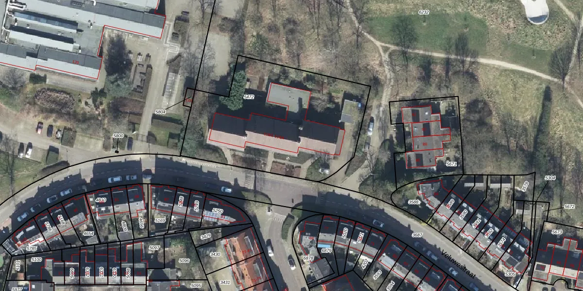 Het perceel waarop Veluwestraat 112-4 staat heeft een oppervlakte van 1960 m². Dit is een zeer groot perceel. De perceeloppervlakte wordt geregistreerd door het Kadaster. Gedetailleerde informatie over de maten van dit perceel kunt u vinden in het rapport Kadastrale kaart met maatvoering van Veluwestraat 112-4.