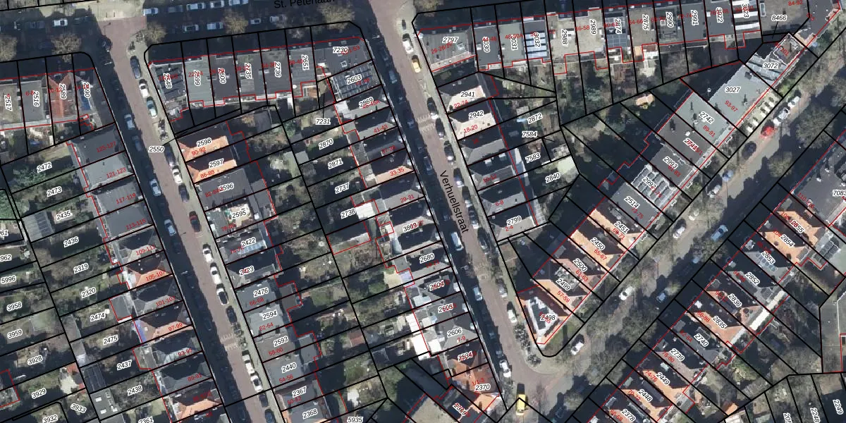 Het perceel waarop Verhuellstraat 27 staat heeft een oppervlakte van 300 m². Dit is een groot perceel. De perceeloppervlakte wordt geregistreerd door het Kadaster. Gedetailleerde informatie over de maten van dit perceel kunt u vinden in het rapport Kadastrale kaart met maatvoering van Verhuellstraat 27.