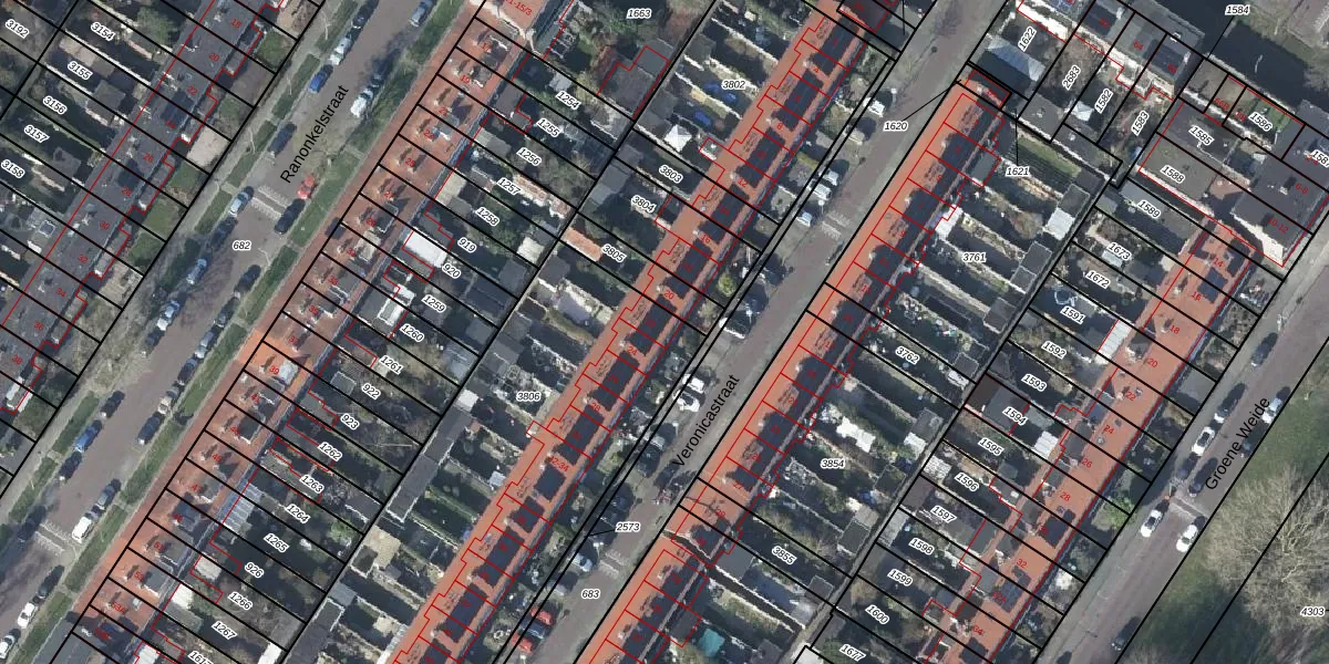 Het perceel waarop Veronicastraat 22 staat heeft een oppervlakte van 2982 m². Dit is een zeer groot perceel. De perceeloppervlakte wordt geregistreerd door het Kadaster. Gedetailleerde informatie over de maten van dit perceel kunt u vinden in het rapport Kadastrale kaart met maatvoering van Veronicastraat 22.
