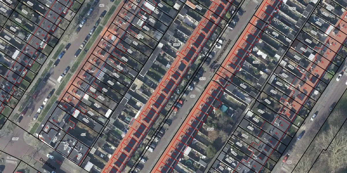 Het perceel waarop Veronicastraat 38 staat heeft een oppervlakte van 2982 m². Dit is een zeer groot perceel. De perceeloppervlakte wordt geregistreerd door het Kadaster. Gedetailleerde informatie over de maten van dit perceel kunt u vinden in het rapport Kadastrale kaart met maatvoering van Veronicastraat 38.