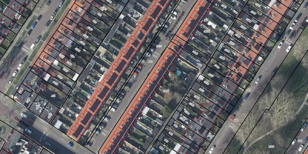 Het perceel waarop Veronicastraat 39 staat heeft een oppervlakte van 2462 m². Dit is een zeer groot perceel. De perceeloppervlakte wordt geregistreerd door het Kadaster. Gedetailleerde informatie over de maten van dit perceel kunt u vinden in het rapport Kadastrale kaart met maatvoering van Veronicastraat 39.