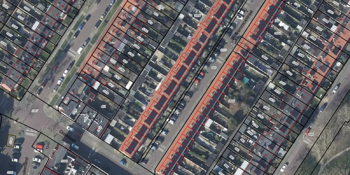 Het perceel waarop Veronicastraat 46 staat heeft een oppervlakte van 2982 m². Dit is een zeer groot perceel. De perceeloppervlakte wordt geregistreerd door het Kadaster. Gedetailleerde informatie over de maten van dit perceel kunt u vinden in het rapport Kadastrale kaart met maatvoering van Veronicastraat 46.