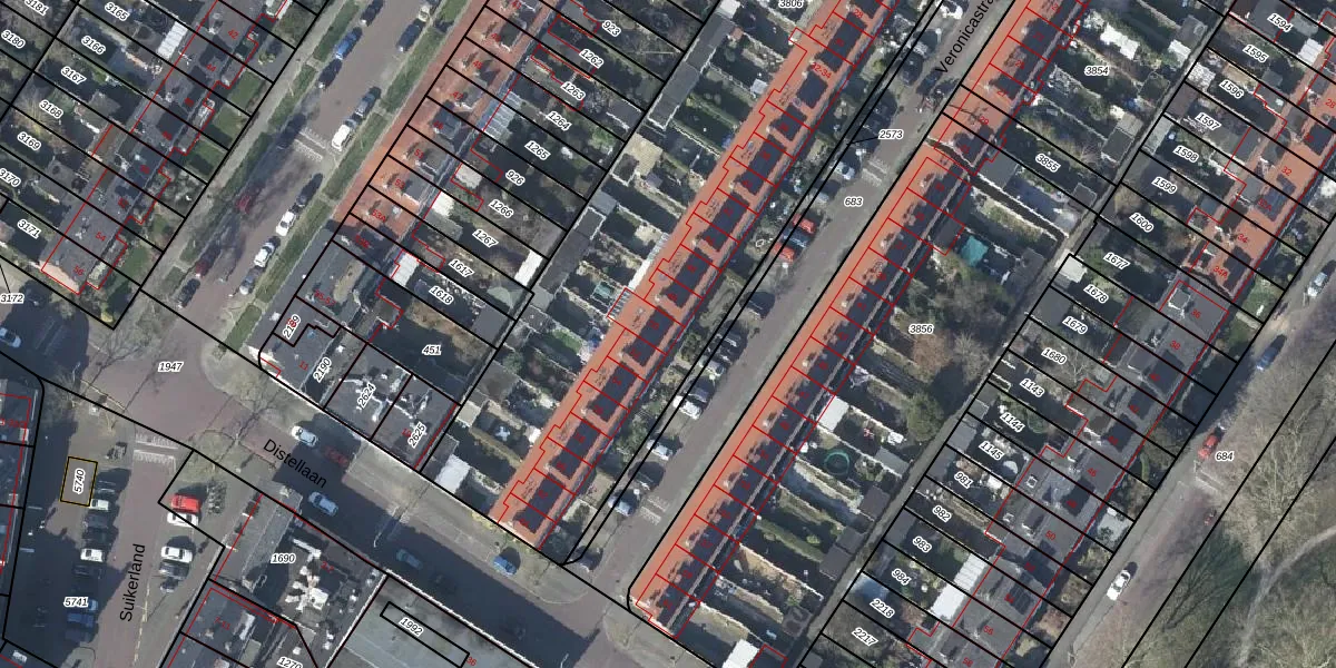 Het perceel waarop Veronicastraat 50 staat heeft een oppervlakte van 2982 m². Dit is een zeer groot perceel. De perceeloppervlakte wordt geregistreerd door het Kadaster. Gedetailleerde informatie over de maten van dit perceel kunt u vinden in het rapport Kadastrale kaart met maatvoering van Veronicastraat 50.