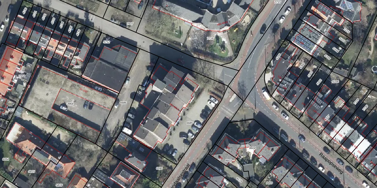 Het perceel waarop het adres ligt is AHM01-R-6685. De afkorting 'AHM01' staat voor kadastrale gemeente Arnhem. Het perceel is kleiner dan gemiddeld in Arnhem. Het perceel is 1807 m² groot, terwijl het gemiddelde ligt op 2520,42 m². De grootste perceeloppervlakte in de kadastrale gemeente is 1,57 km². De kleinste oppervlakte bedraagt 0 m². Op het perceel liggen in totaal 28 adressen. De huidige grenzen van het perceel zijn digitaal in de Basisregistratie Kadaster (BRK) geregistreerd op 28-07-2010.