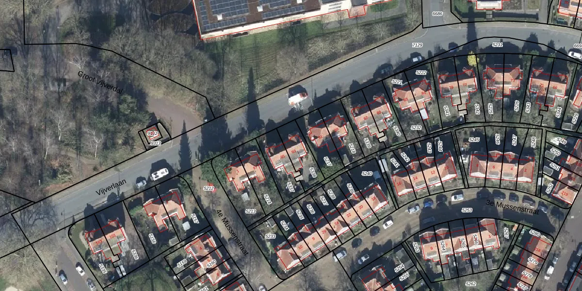 Het perceel waarop Vijverlaan 93 staat heeft een oppervlakte van 179 m². Dit is een middelgroot perceel. De perceeloppervlakte wordt geregistreerd door het Kadaster. Gedetailleerde informatie over de maten van dit perceel kunt u vinden in het rapport Kadastrale kaart met maatvoering van Vijverlaan 93.