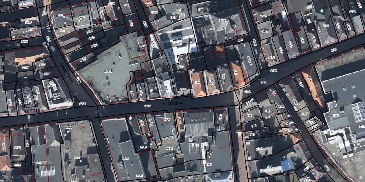 Gebruik de zoekbalk of klik op een perceel voor informatie over de adressen binnen dit perceel.