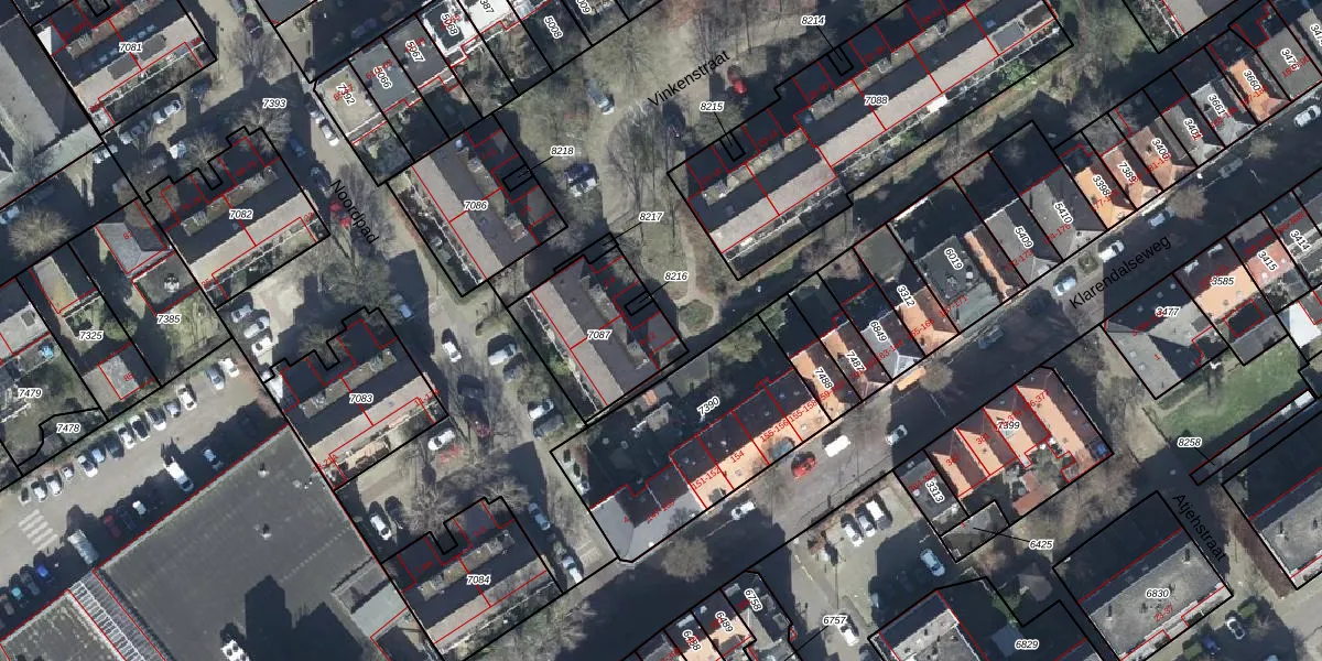 Het perceel waarop Vinkenstraat 8 staat heeft een oppervlakte van 387 m². Dit is een groot perceel. De perceeloppervlakte wordt geregistreerd door het Kadaster. Gedetailleerde informatie over de maten van dit perceel kunt u vinden in het rapport Kadastrale kaart met maatvoering van Vinkenstraat 8.