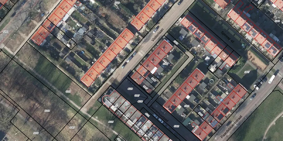 Het perceel waarop Violierlaan 23 staat heeft een oppervlakte van 120 m². Dit is een middelgroot perceel. De perceeloppervlakte wordt geregistreerd door het Kadaster. Gedetailleerde informatie over de maten van dit perceel kunt u vinden in het rapport Kadastrale kaart met maatvoering van Violierlaan 23.
