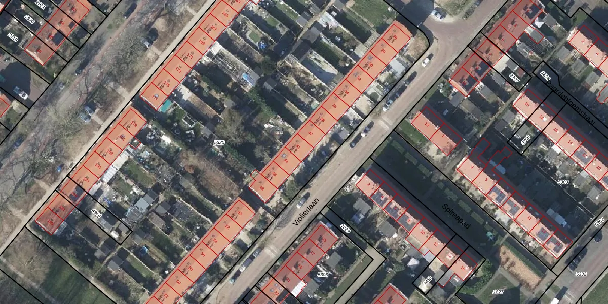 Het perceel waarop Violierlaan 42 staat heeft een oppervlakte van 7975 m². Dit is een zeer groot perceel. De perceeloppervlakte wordt geregistreerd door het Kadaster. Gedetailleerde informatie over de maten van dit perceel kunt u vinden in het rapport Kadastrale kaart met maatvoering van Violierlaan 42.