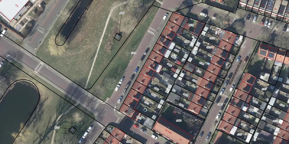 Het perceel waarop het adres ligt is AHM01-E-4382. De afkorting 'AHM01' staat voor kadastrale gemeente Arnhem. Het perceel is kleiner dan gemiddeld in Arnhem. Het perceel is 622 m² groot, terwijl het gemiddelde ligt op 2519,97 m². Het grootste perceel in de kadastrale gemeente is 1,57 km². Het kleinste perceel heeft een oppervlakte van 0 m². Er zijn 4 adressen aanwezig op het perceel. De huidige grenzen van het perceel zijn digitaal in de Basisregistratie Kadaster (BRK) geregistreerd op 28-07-2010.