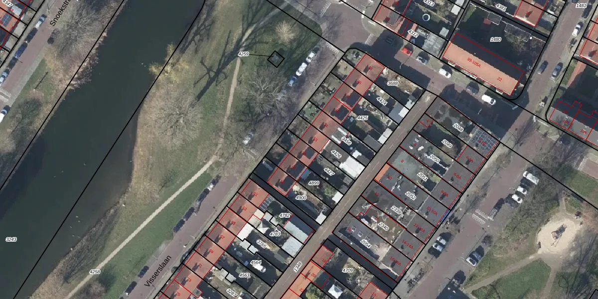 Visserslaan 55 is gelegen op kadastraal perceel AHM01E4427. Deze kadastrale aanduiding is uniek en wordt gebruikt door het Kadaster om eigendomsrechten en andere zakelijke rechten vast te leggen. Het perceel maakt onderdeel uit van de kadastrale gemeente Arnhem.