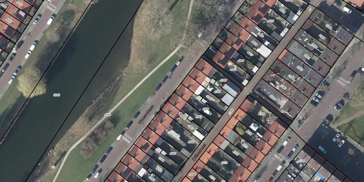 Het perceel waarop Visserslaan 67 staat heeft een oppervlakte van 174 m². Dit is een middelgroot perceel. De perceeloppervlakte wordt geregistreerd door het Kadaster. Gedetailleerde informatie over de maten van dit perceel kunt u vinden in het rapport Kadastrale kaart met maatvoering van Visserslaan 67.