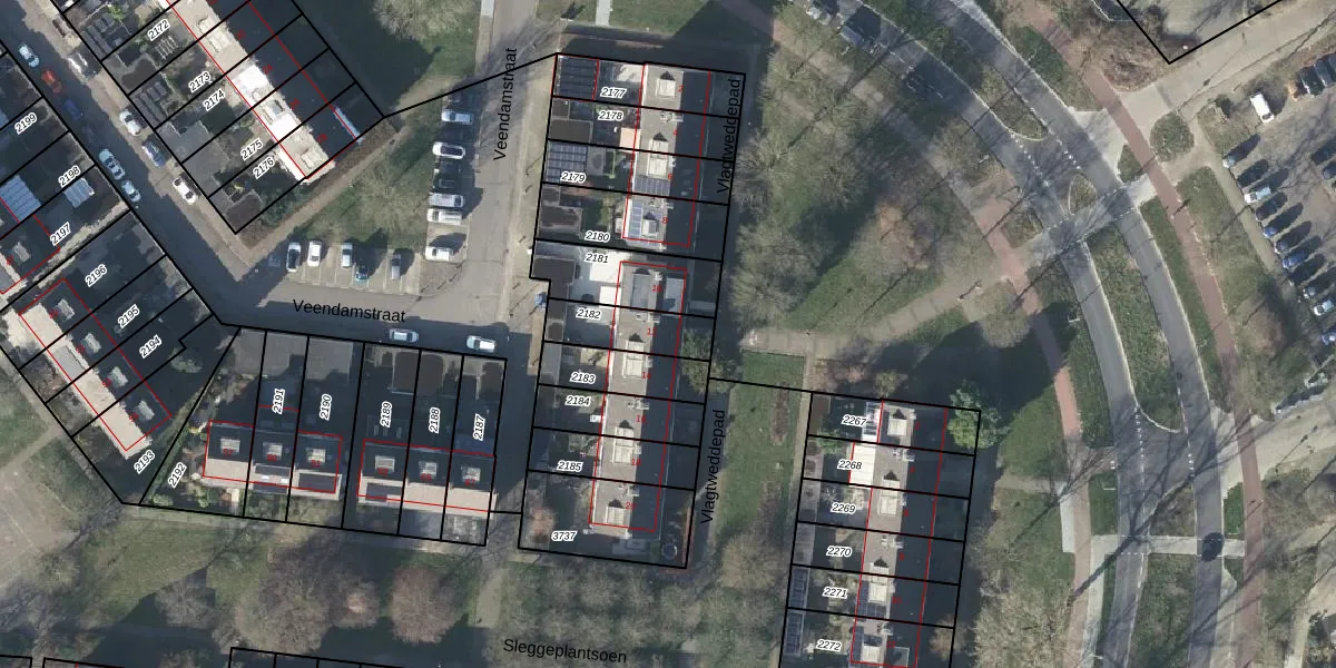 Gebruik de zoekbalk of klik op een perceel voor informatie over de adressen binnen dit perceel.
