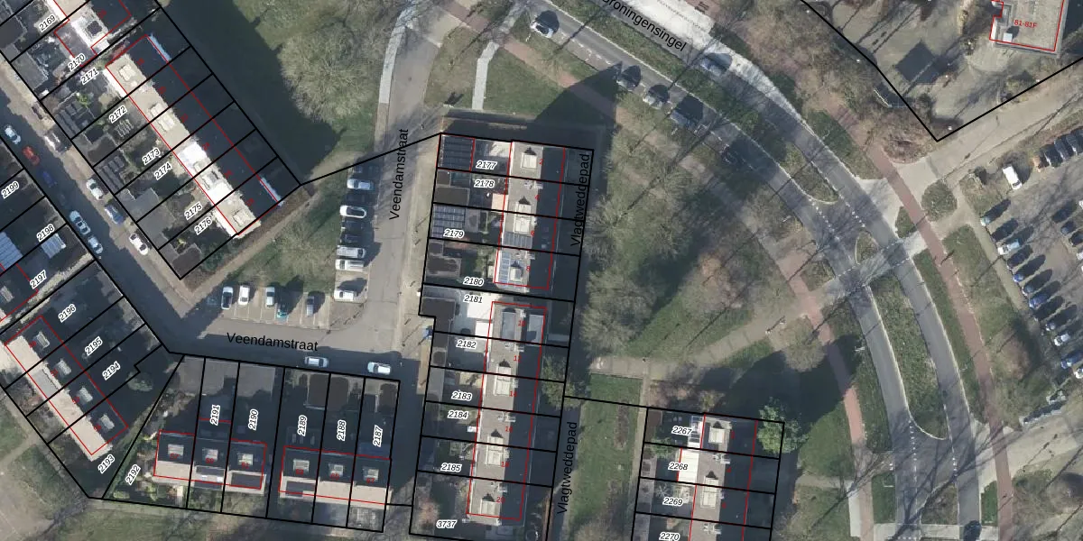 Gebruik de zoekbalk of klik op een perceel voor informatie over de adressen binnen dit perceel.